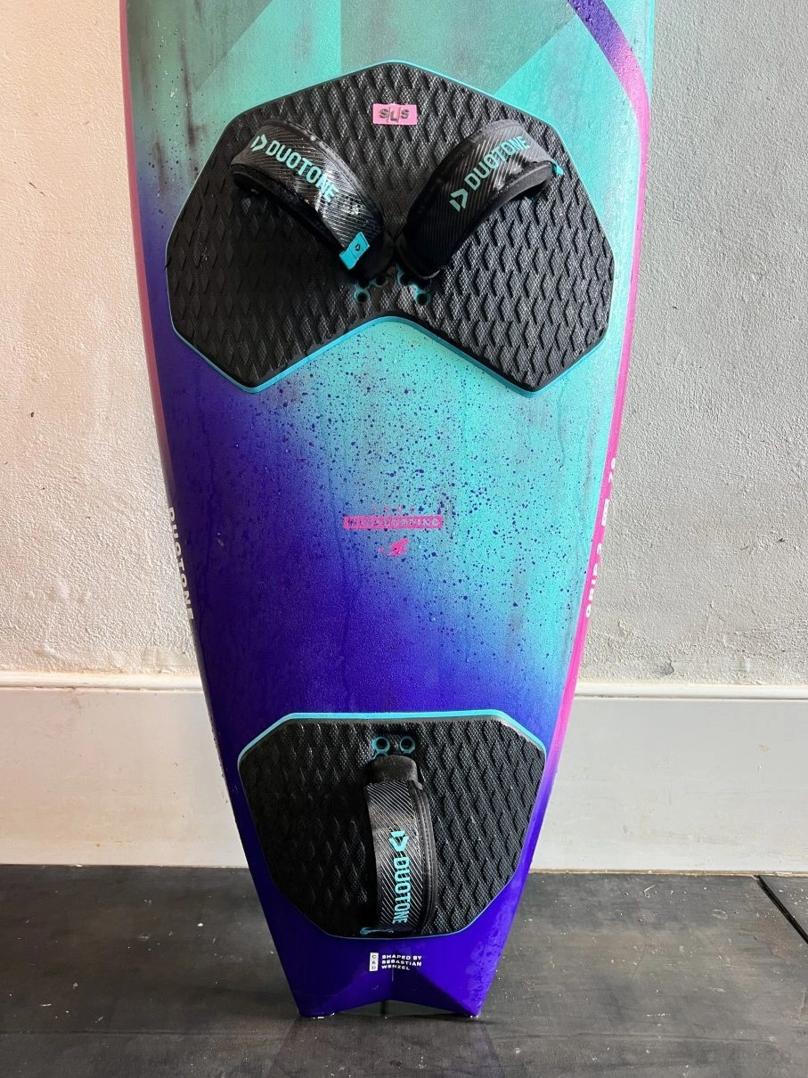 The Duotone Grip 3 SLS 2025 79 liters is the smallest of the Grip 3 SLS we have available for you. A super nice board for lighter riders or as a waveboard for powerfull conditions. Comes with original fins and footsteps and can be send to you anywhere in Europe. Delivery start from the middle / end of August.