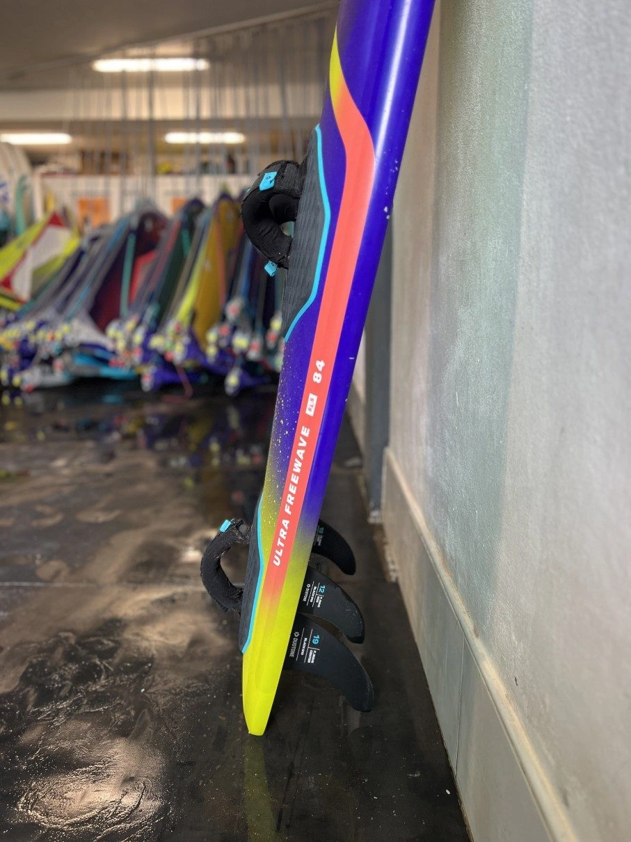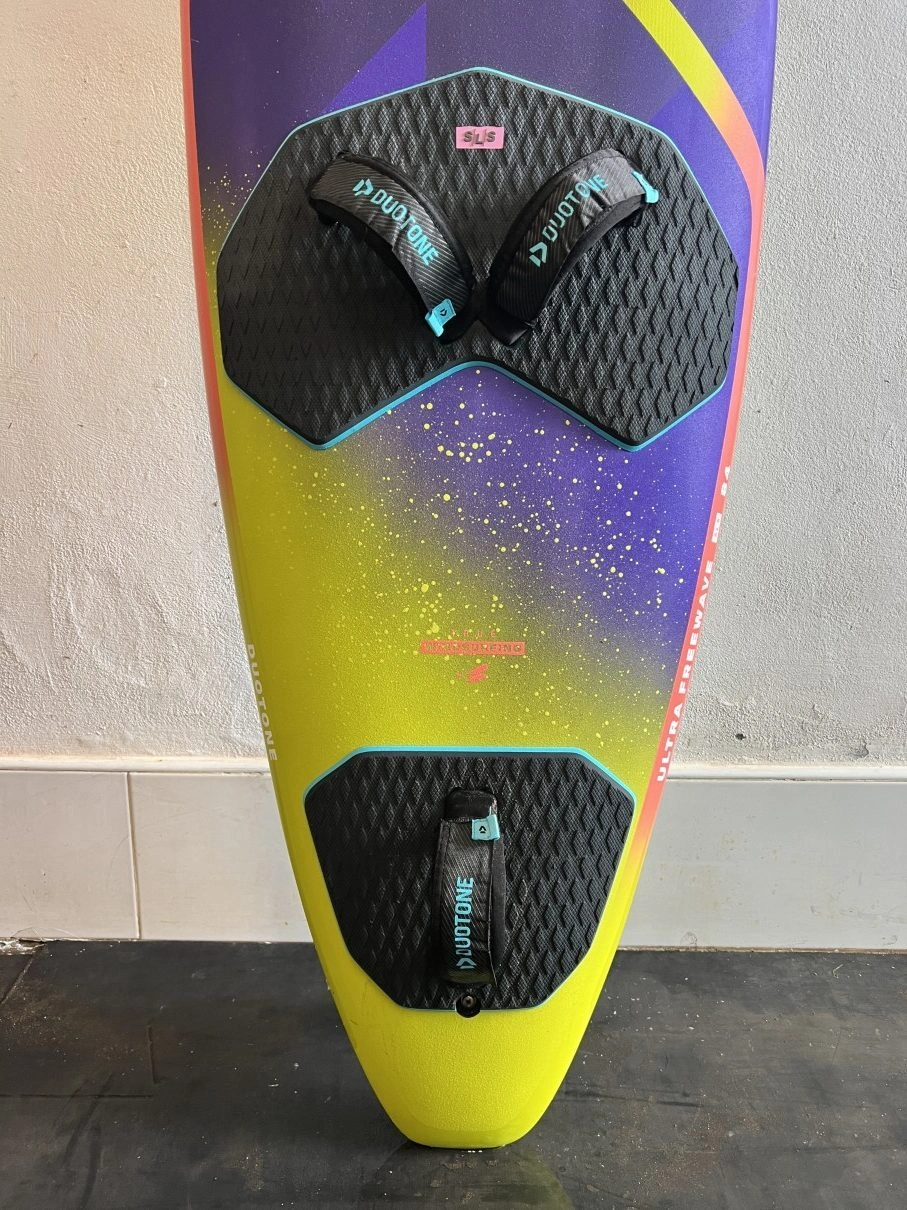 The Duotone ULTRA FreeWave SLS 2025 84 liters is the smallest of the ULTRA FreeWave SLS we have available for you. It’s fast, easy to handle, and surprisingly forgiving. This board adapts easily to your style with its clever fin system. Whether you go for the single fin or tri-fin setup, each option offers a unique and exciting ride. Ideal for riders who want a versatile board that performs great in all conditions. Comes with original fins and footsteps and can be send to you anywhere in Europe. Delivery start from the middle / end of August.