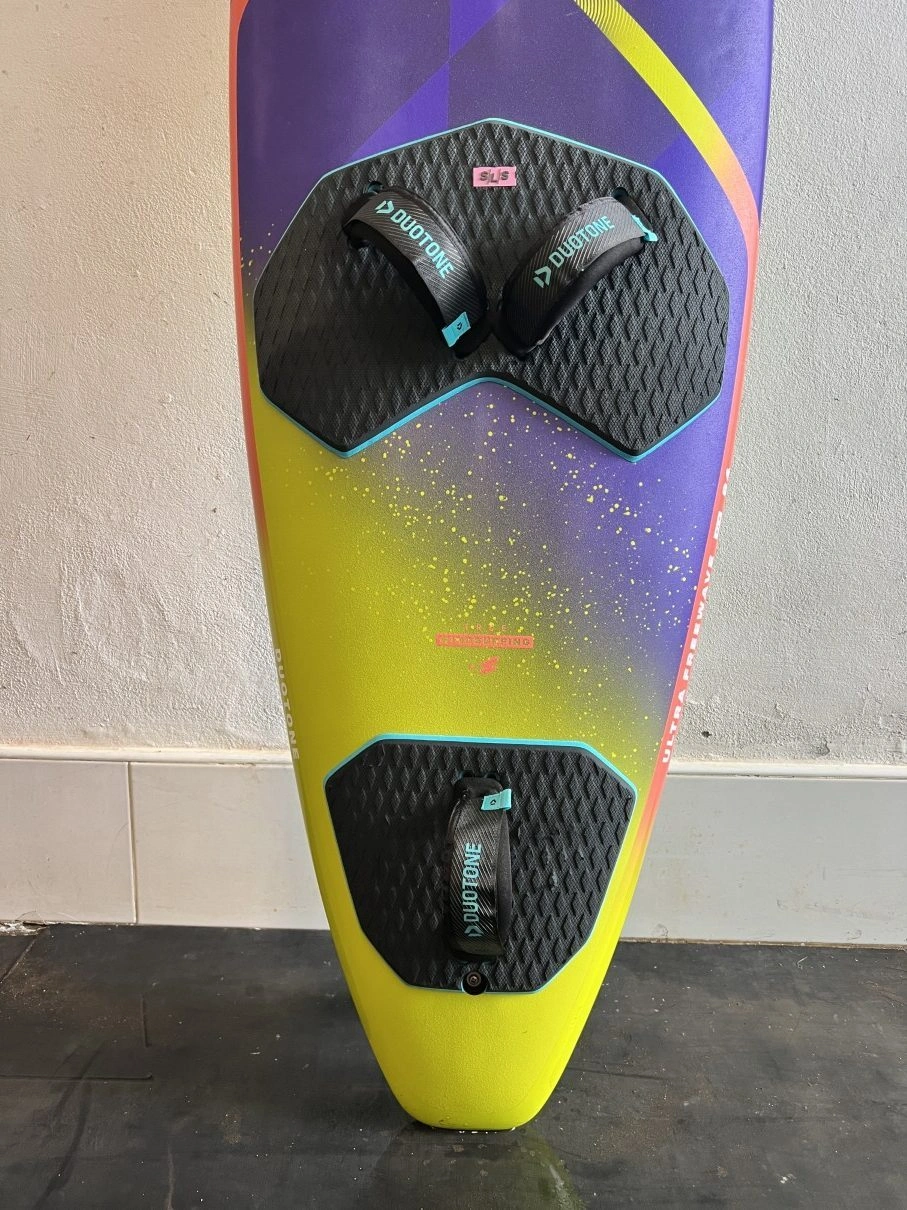 The Duotone ULTRA FreeWave SLS 2025 84 liters is the smallest of the ULTRA FreeWave SLS we have available for you. Perfect for anyone who wants a versatile board that fully adapts to your style. Thanks to the smart fin system, you can ride it with either a single fin or tri-fin setup each giving a different, fun ride experience. Comes with original fins and footsteps and can be send to you anywhere in Europe. Delivery start from the middle / end of August.